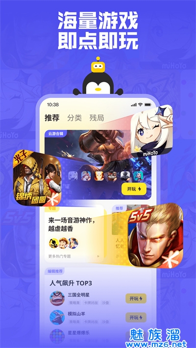 别看我体型小(不到40M呦),有丰富多样的游戏!最新、最热、最好玩的游戏全都有,角色扮演、动作、塔防等多种类型,应有尽有。所有游戏无需下载安装,点击即可开玩,大大提高游戏体验。