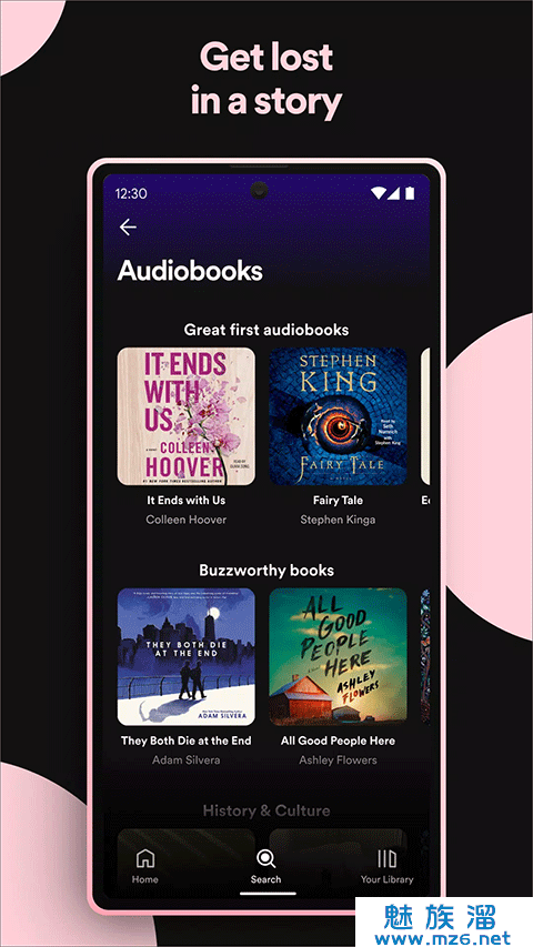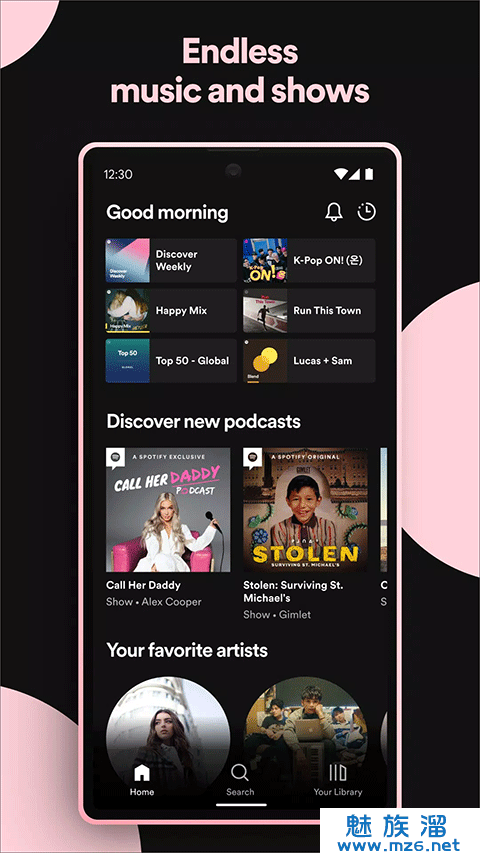 2、聆听来自世界各地歌手的数百万首歌曲、Podcasts和视频。