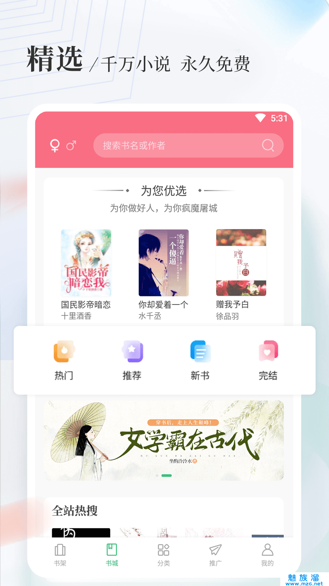 热门分类,都市爽文、言情穿越、玄幻修仙、武侠世界……你想看的这里都有。