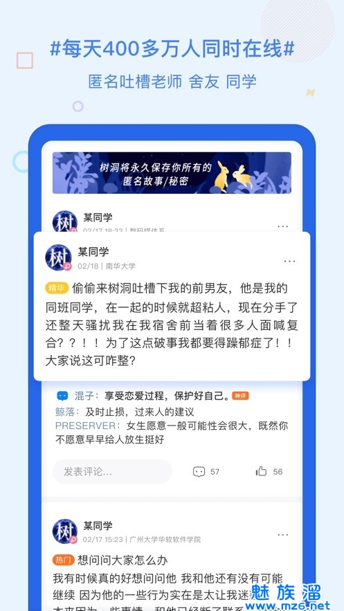 2、校内吐槽树洞随时随地倾述心中秘密;