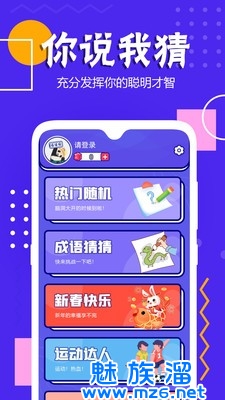 你说我猜游戏app是一款非常新颖有趣的猜谜闯关类平台,在这款软件中汇集了各种各样的猜谜模式,轻松参与各种提问和挑战过程,并且根据线索的提示猜出相应的答案,挑战趣味满满。通过你说我猜安卓版中各种丰富有趣的题卡任你选择,在这里轻松挑战获取更高的分数,有兴趣的快试试吧。
