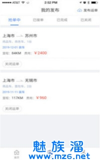 企业可以在线查看抢单、已接单、已结束、已关闭状态的运单信息。
