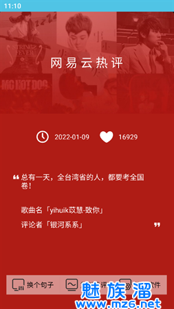 网易云热评墙,聚集了网易云音乐所有的热门评论,非常好玩的一个软件哦!