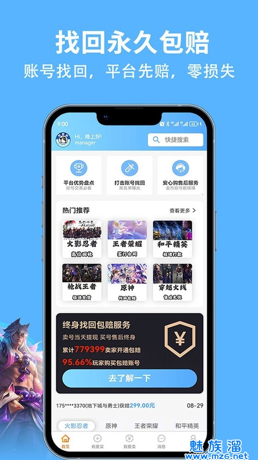 3、不同类型游戏账号应有尽有,大家的整个账户交易也很安全,值得一试。