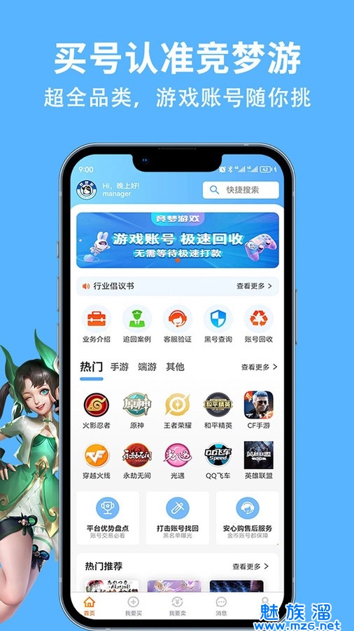 竞梦游软件是一款专业好用的游戏账号交易的手机软件,在这款软件中支持多种不同的交易过程,在这里轻松选择感兴趣的爆款游戏账号的交易流程,各种线上买号、卖号、租号等板块自由参与。在竞梦游2023官方版中轻松体验极致的游戏账号乐趣,有兴趣的用户快试试吧。