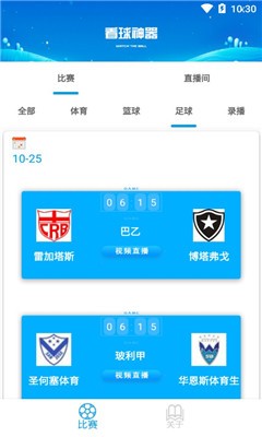 看球神器分两大板块:比赛和直播间,