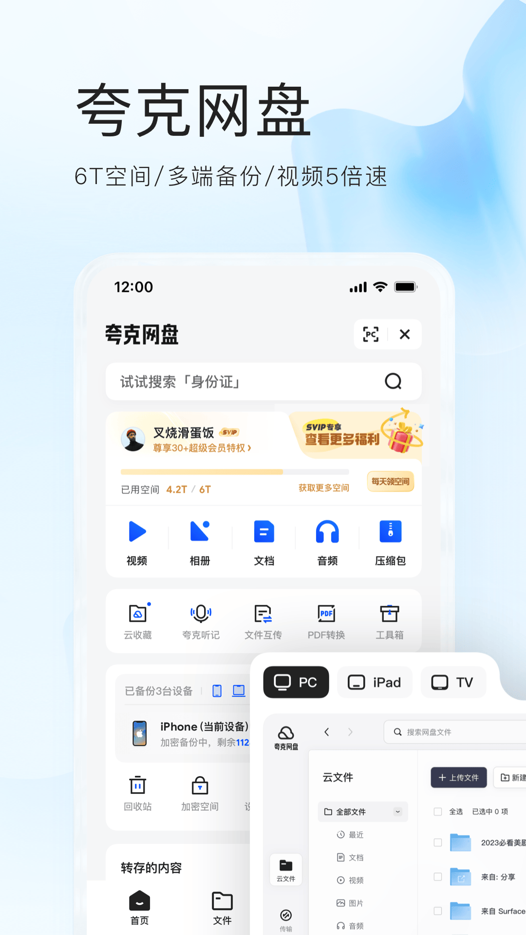 【超大空间】会员专享6TB空间,个人资料任性存储。