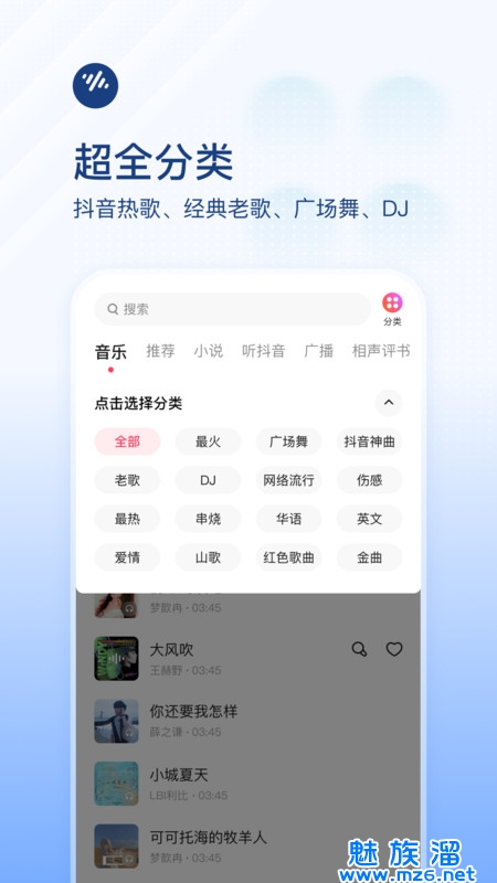 3、分类非常全,有抖音热歌,经典老歌,广场舞,dj。