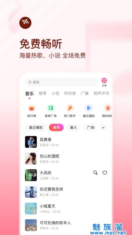 1、免费畅听,海量的热歌、小说,全场都免费。