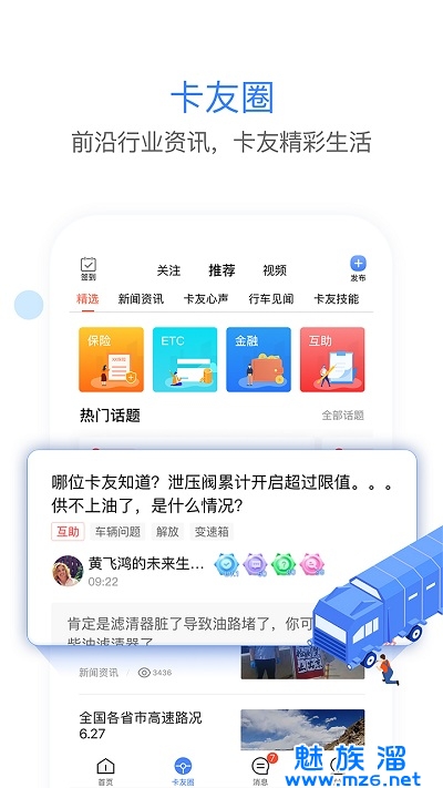 车辆管理、路况分享、发货配货、招聘找车、周边加油站、精彩活动,等待您的发现!