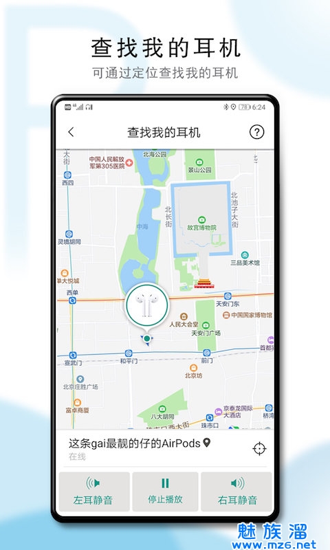 5、以地图的方式为用户呈现耳机的位置,方便用户可以更精准的找到耳机