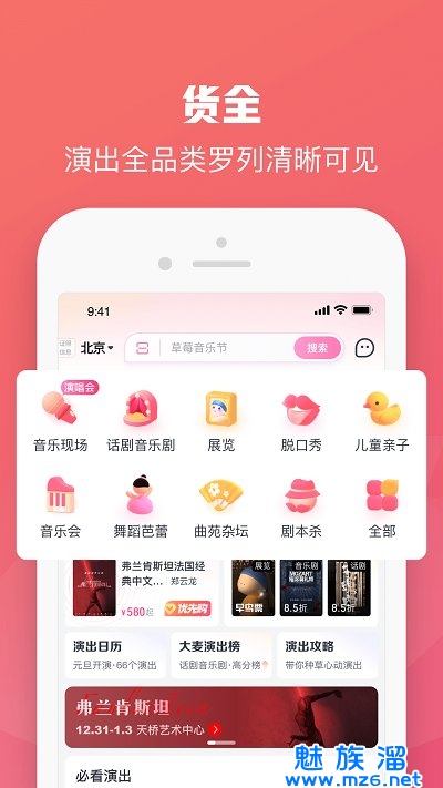 为华语地区领先的娱乐票务平台,为用户提供演唱会、话剧、体育比赛、儿童亲子、电影、展览等品类的选座购票服务,满足亿万观众走入演出现场的梦想。