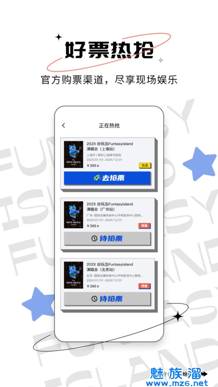纷玩岛票务官方版是一款非常便捷的线上购票软件,适用于各种展览、演出、音乐节等场合。用户可以在该平台上轻松查看各种票务信息,获取一手票源,并选择适合自己的票位区间。通过下载安装app,用户还可以订阅自己所在城市或喜欢的音乐人的票务信息,以便及时抢票,不错过任何精彩的演出。