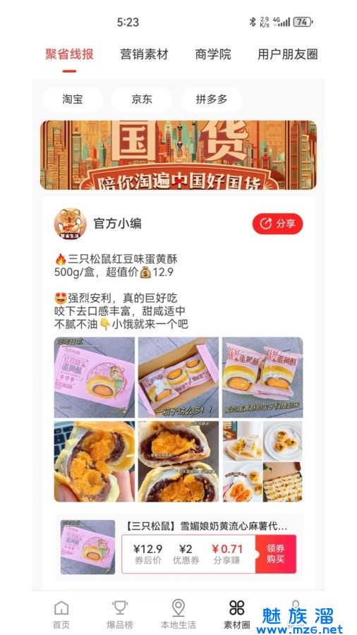 优惠券还能一键分享给你身边的朋友一起来赚钱花。