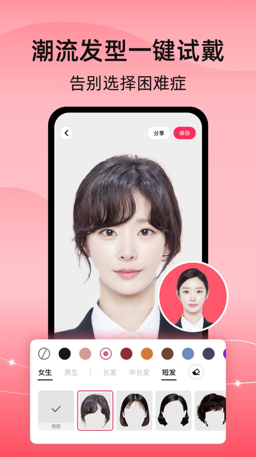 2、潮流发型一键试戴吧,告别选择困难症的工具;