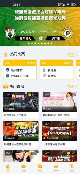 实时更新英超、中超、欧洲杯等足球直播,NBA直播,电竞直播以及高尔夫、网球、斯诺克、羽毛球等比赛内容