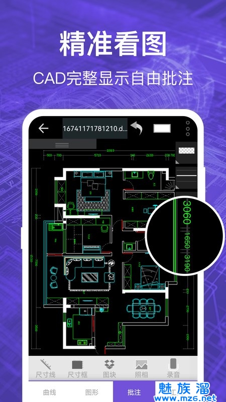 3、CAD批注,支持语音、照片、文字等多种批注,并可分享好友协同工作;