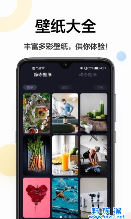 1、海量丰富的壁纸主题素材,轻松在线设置使用哦。