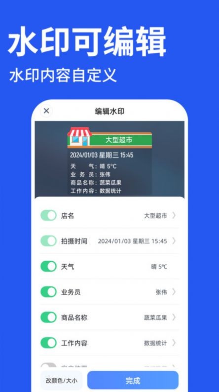 2、水印可编辑的工具,水印内容自定义编辑,设置简单;