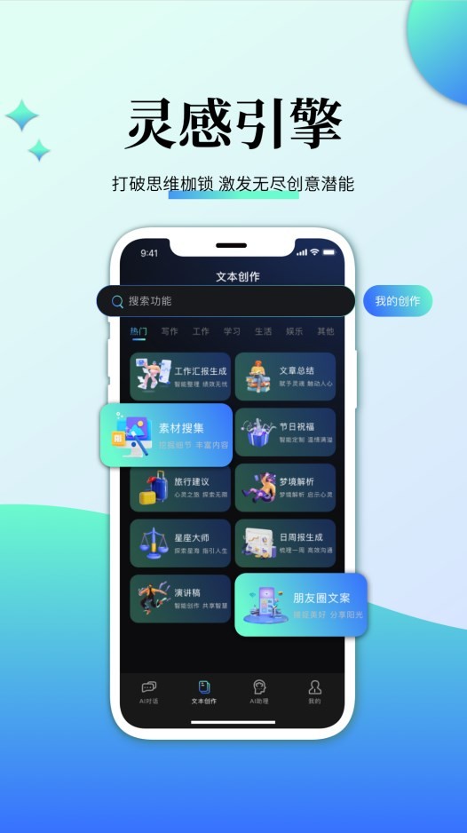 1、全能的ai创作生成器助手,支持多种创作功能,一键生成。
