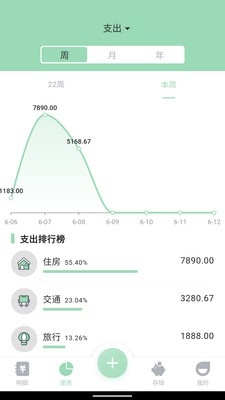 3、详细的明细和图表展示帮您关注收支的来源和去向,为日常生活的开支提供参考。