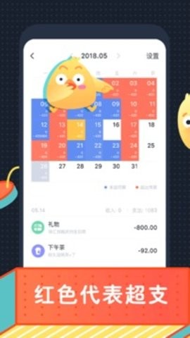 每日支出将会汇总到日历中,一目了然了解每天的支出情况,还能设置红色超支提醒