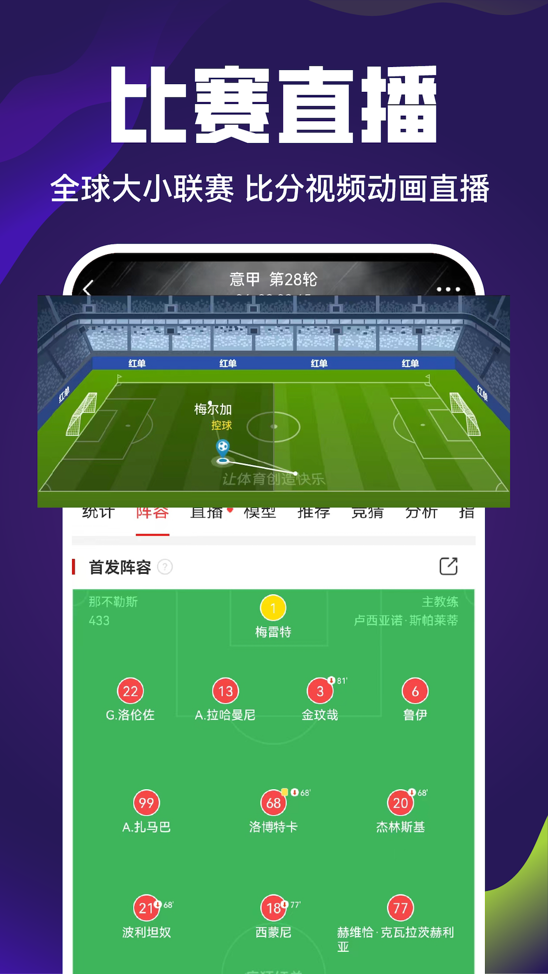 专业的资料库覆盖英超、西甲、德甲、法甲、意甲、CBA等全球300余种足篮球赛事。