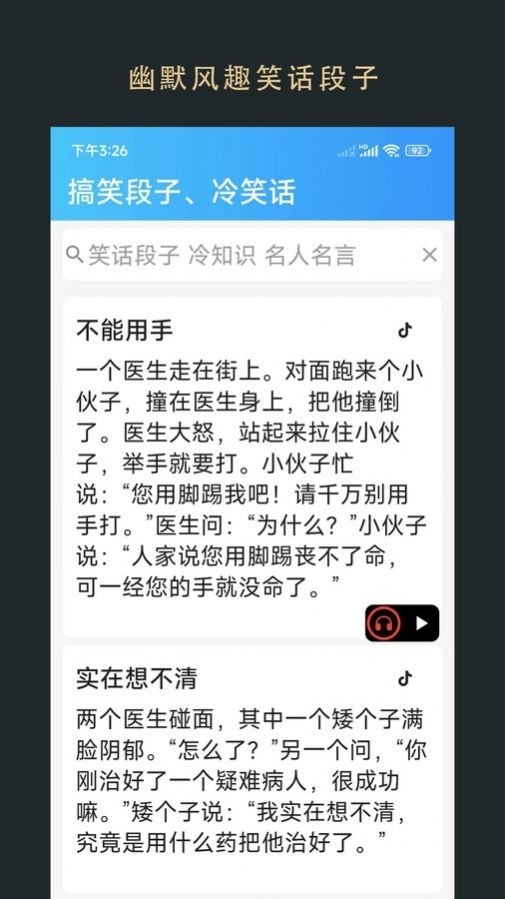 1、幽默风趣笑话段子,每次阅读都是开怀大笑;