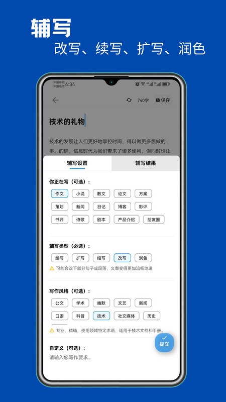 2、满足大家的不同写作创作需求,高效完成写作任务。