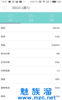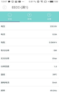 通过该客户端可以查看电箱分路的实时运行参数,包括电压、电量、电功率等实时数值