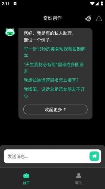 【奇妙创作软件】是一款非常不错的在线创作平台。这里的文案句子都是非常优质的,还有不同的素材资源可以免费使用,操作起来也是非常简单的,大家只要输入关键词就可以获得喜欢的文案,语句通顺流畅,没有乱码。喜欢【奇妙创作软件】的朋友们就来下载看看吧。