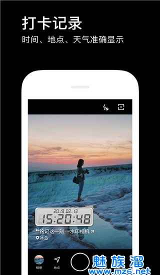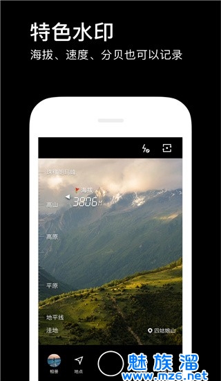 2.智能的水印模版:天气、地点、时间、分贝、海拔、速度,智能水印自动添加到照片上;