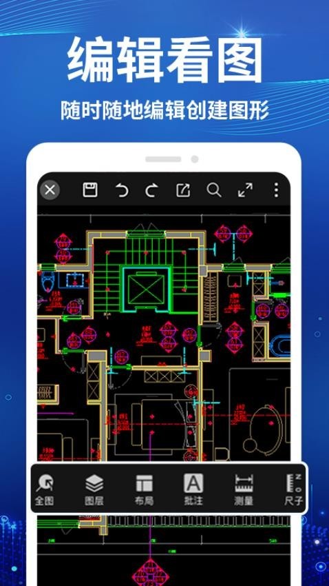 【CAD看图测绘仪app】是一款好用的手机看图测量软件。不管是日常学习还是生活办公都可以用得到,让大家可以轻松测量计算数据,使用起来非常便捷。大家也可以借助这款软件绘制不同的工作图片,提高办公效率。需要【CAD看图测绘仪app】的朋友们就来本站下载看看吧。