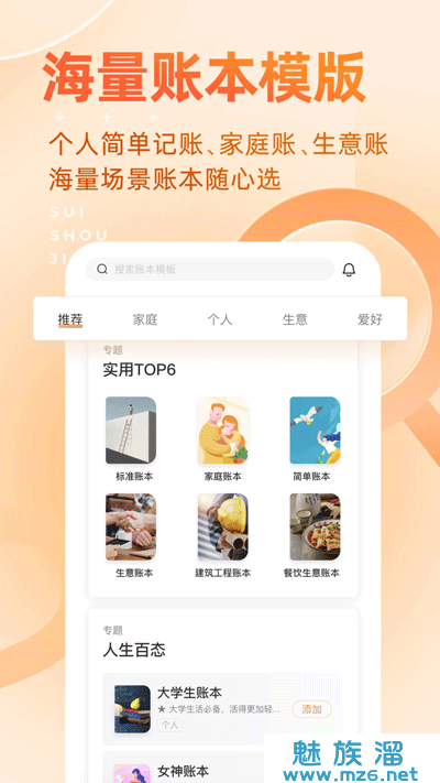 1、各种首创场景记账,旅游账、装修账、汽车账,都能搞定。
