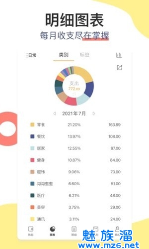 自动的对消费数据进行统计,您不用进行任何复杂的计算;