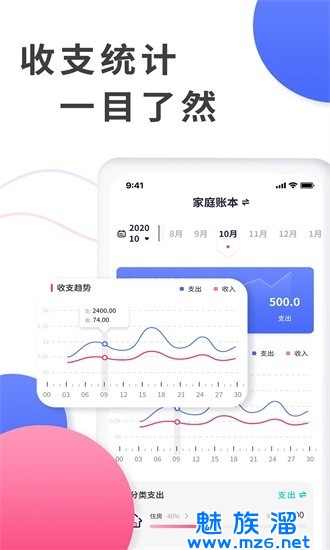 随时查看你的每一笔消费详细记录,知道钱花哪儿了,花销占比大的支出是什么