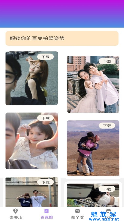 百变拍拍app是一款专业好用的手机拍摄软件,在这款软件中轻松拍出更高清精美的美照,里面汇集了各种创意性十足的摄影技巧,多种不同的拍摄模式自由选择,满足用户更加个性化的照片拍摄需求。在百变拍拍安卓版中所有的修图素材以及海量的拍摄模板资源都是免费为用户提供的,有需要的用户快试试吧。