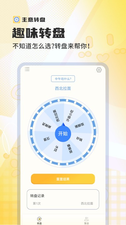 不再选择困难,直接交个转盘来快速做抉择,比如中午吃什么、明天穿什么衣服、