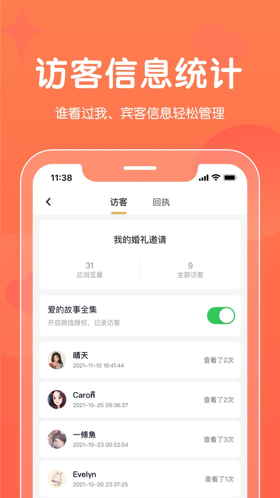 访客信息统计,谁看过我,宾客信息,轻松可管理。