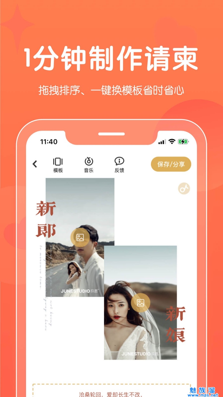 1、1分钟制作请柬,拖拽排序,一键换模板,省时省力。