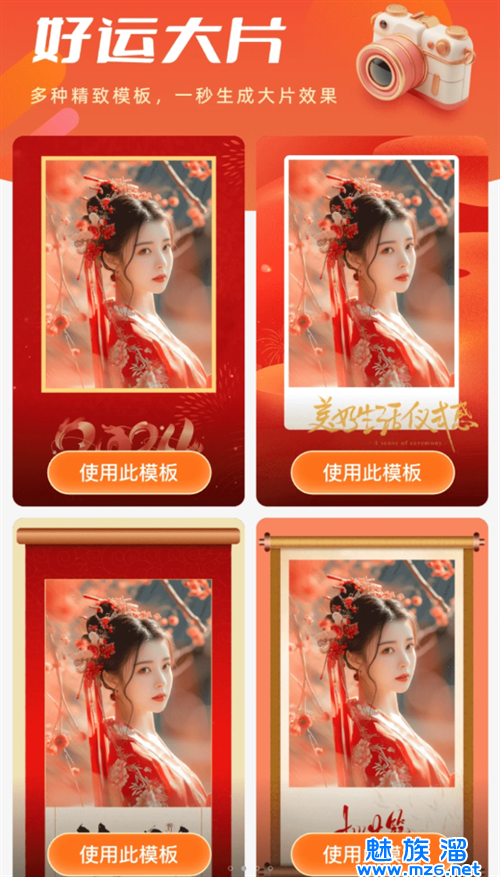 好运相机软件是一款专业好用的手机照片拍摄软件,在这款软件中支持多种不同的拍摄方式,各种精美好看的滤镜、特效、贴纸等素材资源自由添加,轻松打造出专属的照片图像。在好运相机安卓版中还能直接导入时尚流行的模板中,分分钟生成满意的大片哦!