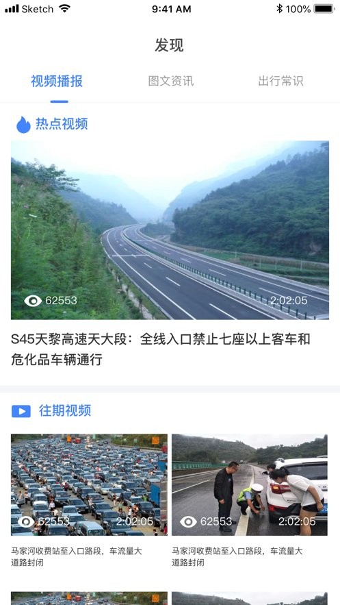 高速路网:包括高速简图、分流预案、高速列表三个模块。点击进入“高速简图”模块,全省高速公路实时路况即刻一览无余。通过区分红黄绿灰四种不同区块,全省高速路段的事故、施工及拥堵等通行状况一目了然。