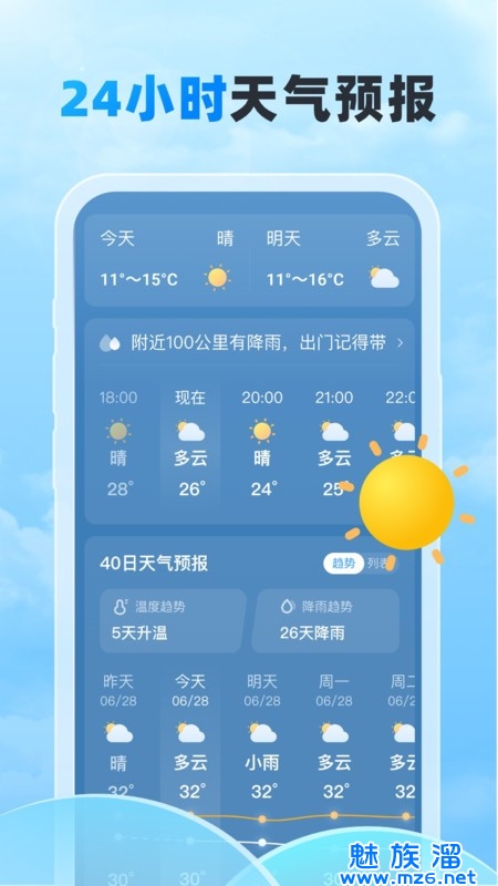 1、采用先进的天气预报算法,精准预测未来15天的天气情况。