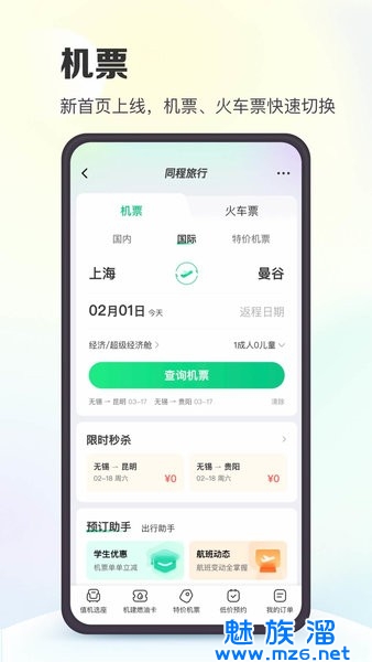 支持非会员预订、支持首页展示订单航班及酒店动态信息