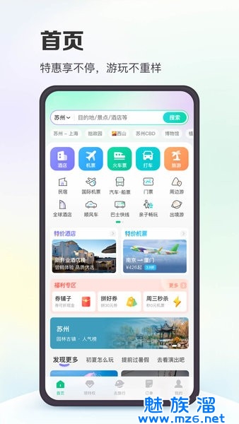 4,景点门票:全国海量景点优惠订,快速出票,支持扫码入园,免排队。门票特惠5折起