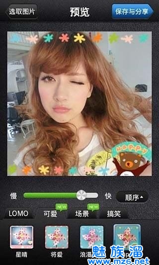 2、内置21张精美图片,精选LOMO和可爱特效,品质有保障。