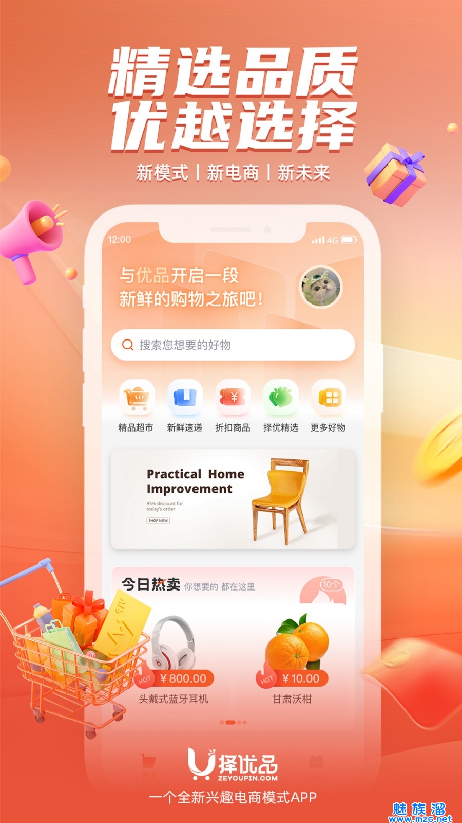 择优品app是一款优质好用的线上商城网购平台,在这款软件中汇集了更全面的商品好物,大量正品高质量的商品好货任你选择,随时上线随时选购心仪的优质资源。在择优品最新手机版中各个商品价格优惠划算,还能不定时参与各种限时秒杀、折扣返利、零元包邮等优惠活动,喜欢网购的小伙伴们快试试吧。
