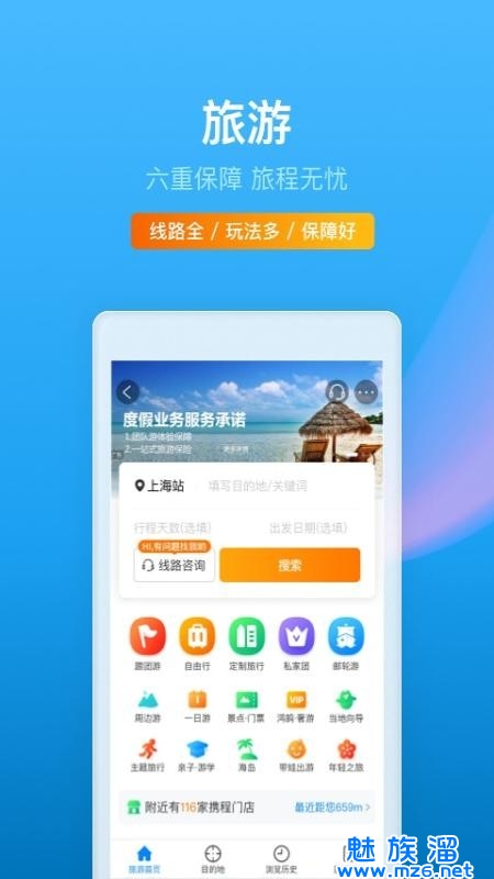 携程旅行app官方版是一款专为众多喜欢出游的小伙伴们打造的旅行出行必备神器,随时上线随时查询各个出行的票务,智能在线订购相应的车票、景点门票、酒店门票等,实现想走就走的旅行。在携程旅行app官方最新版本中可以一站式解决生活中方方面面,不管是周边游、省外游,还是国外游等都能满足用户的需求,有需要的用户快试试吧。