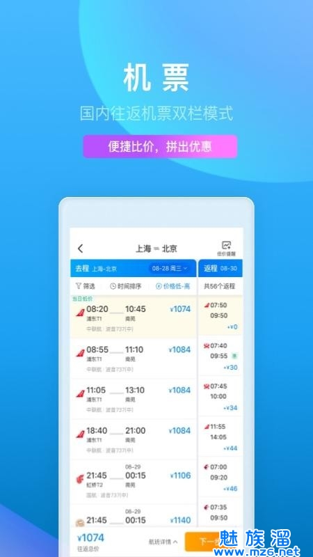 2、【机票·火车票+酒店】一站式预订,覆盖全产品,灵活选资源,多订多优惠。