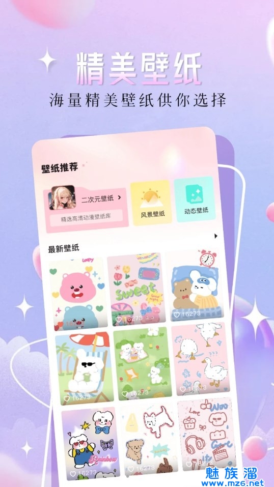 精灵主题壁纸大全app是一款十分优质好用的主题壁纸设置手机软件,海量高清精美的壁纸美图资源收录其中,随时上线随时预览喜欢的壁纸风格,各种热门流行的动态视频或者静态美图资源一网打尽。在精灵主题壁纸大全最新高清版中还能轻松创建出专属的桌面屏幕,有需要的用户快试试吧。